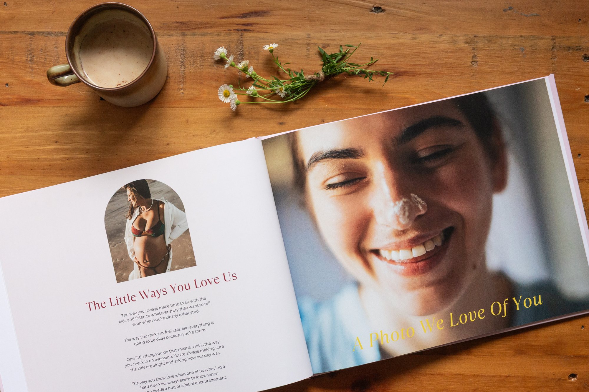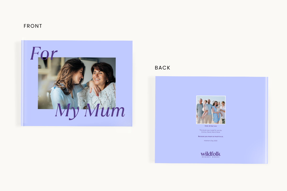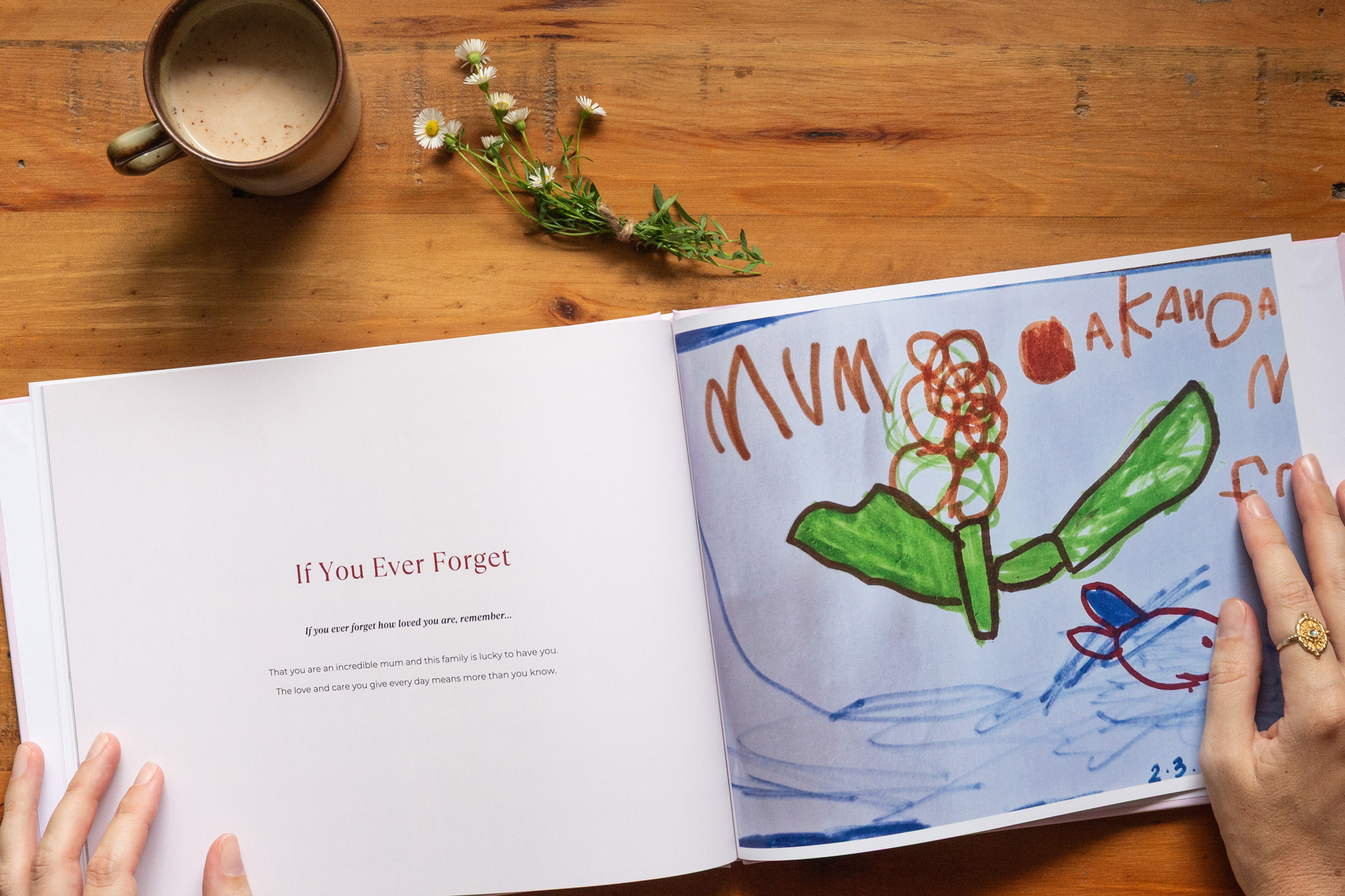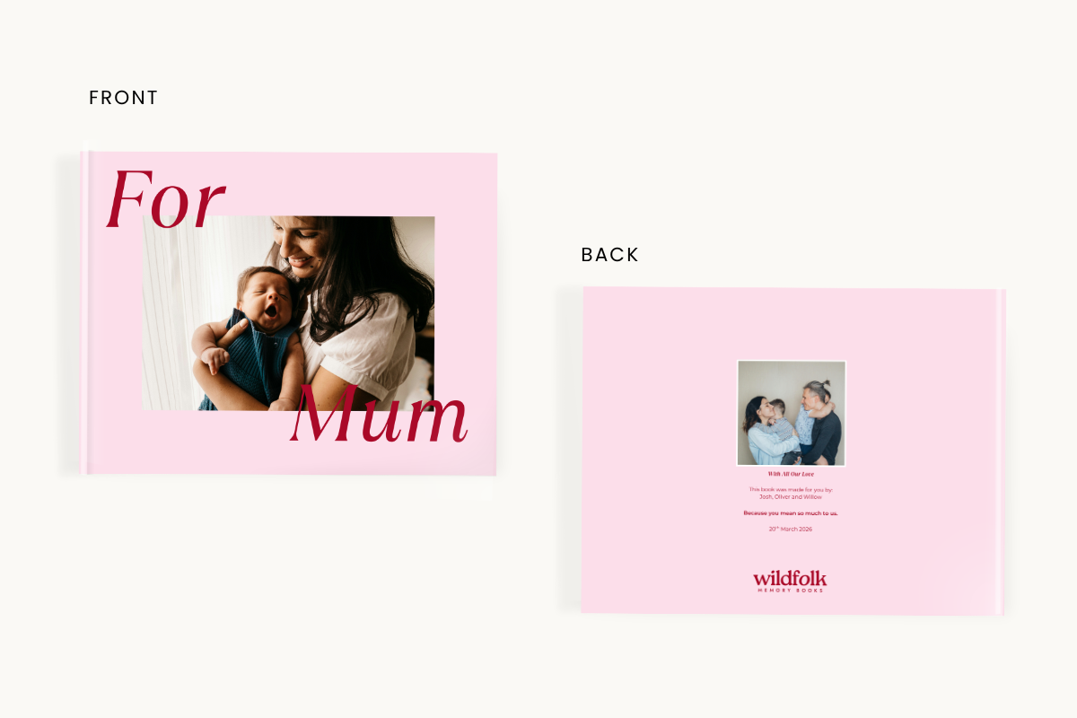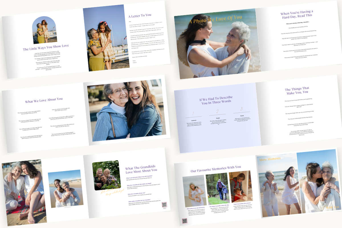 The For Mum (pink) template is designed for your partner, and your kids, to fill in for you. The prompts make it easy even if he's not a natural writer. Many mums send the link with a gentle hint. Others fill it in together as a family. Either way, it works.