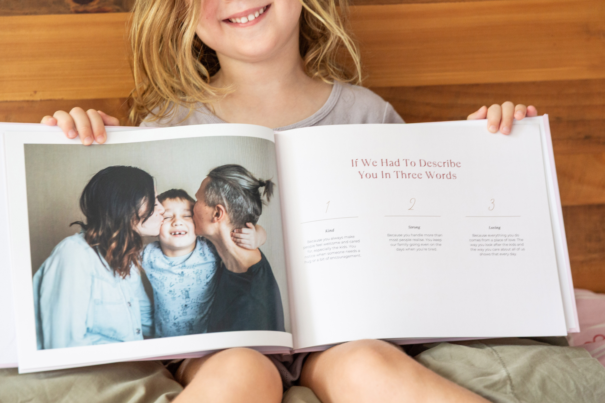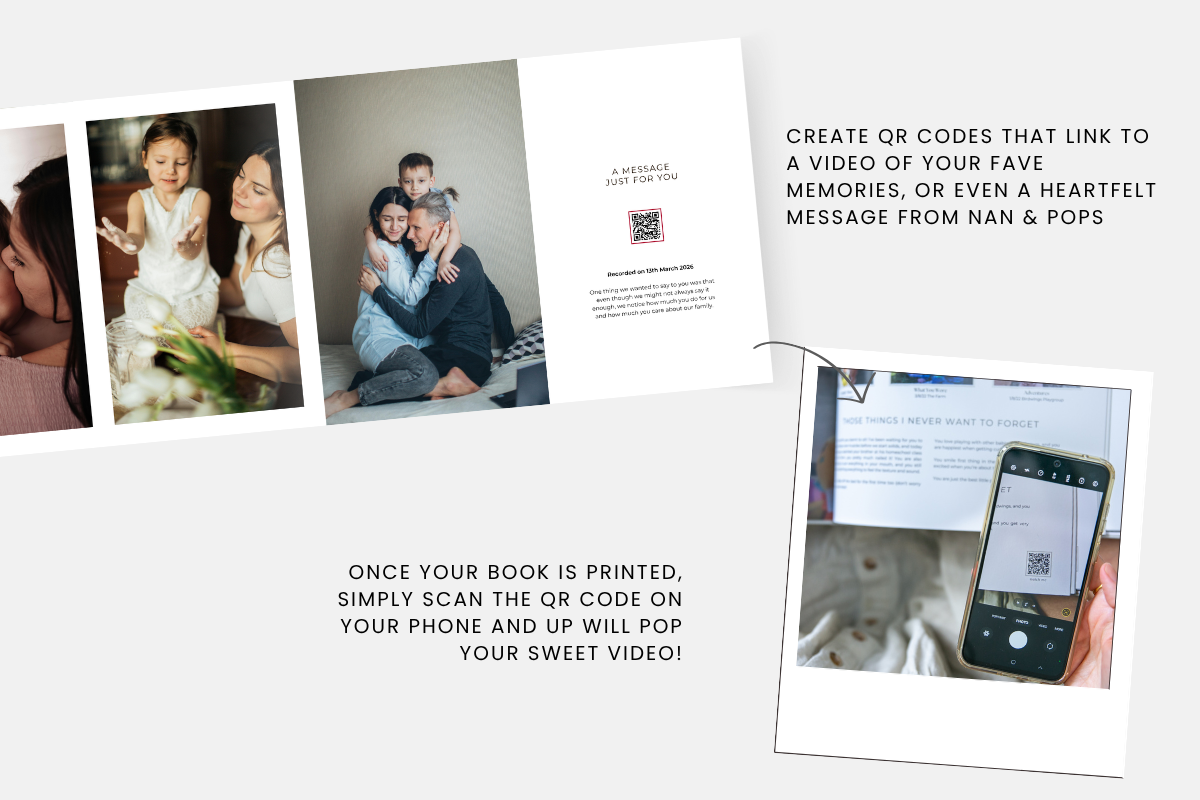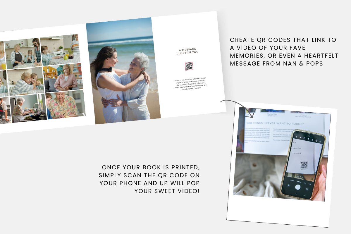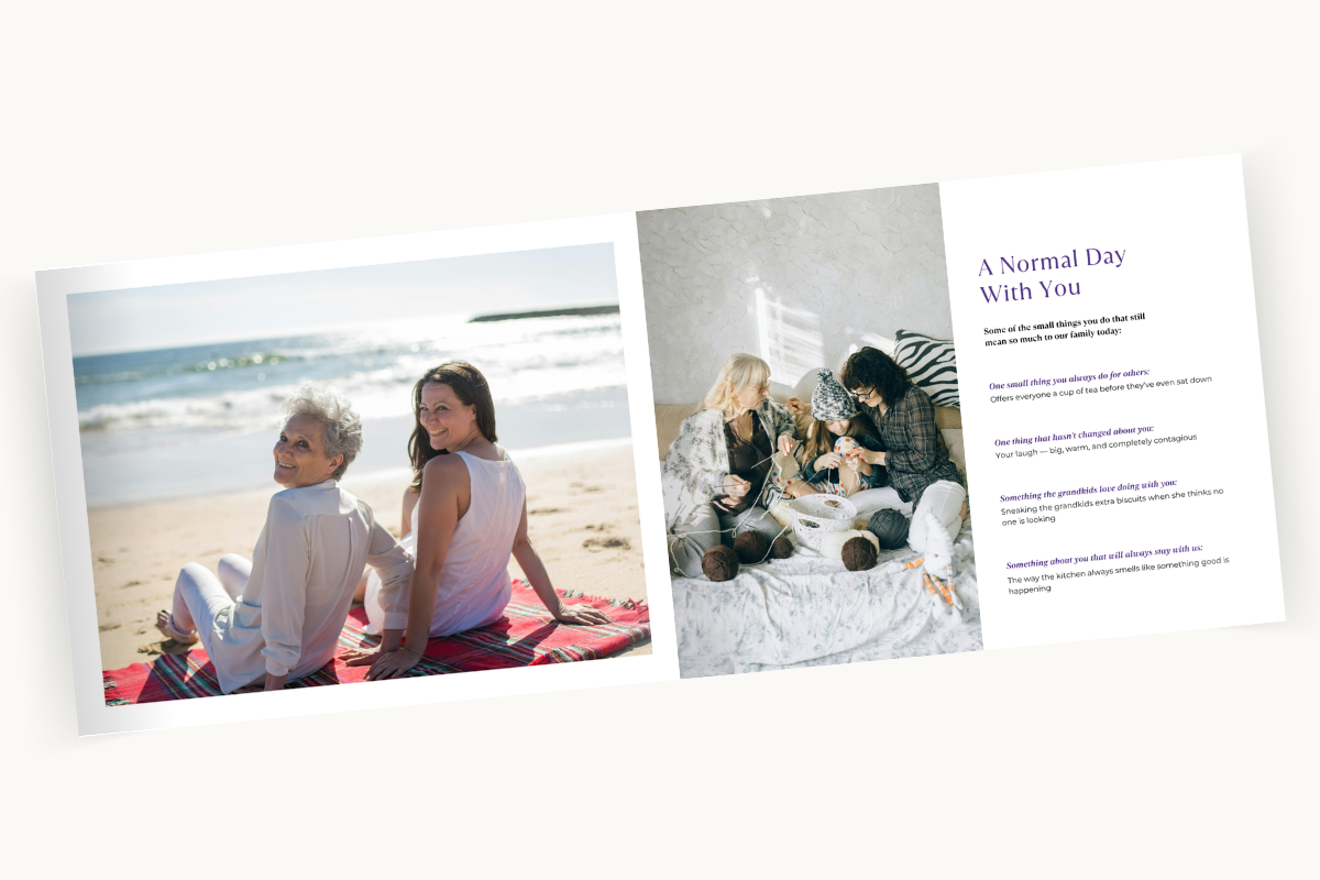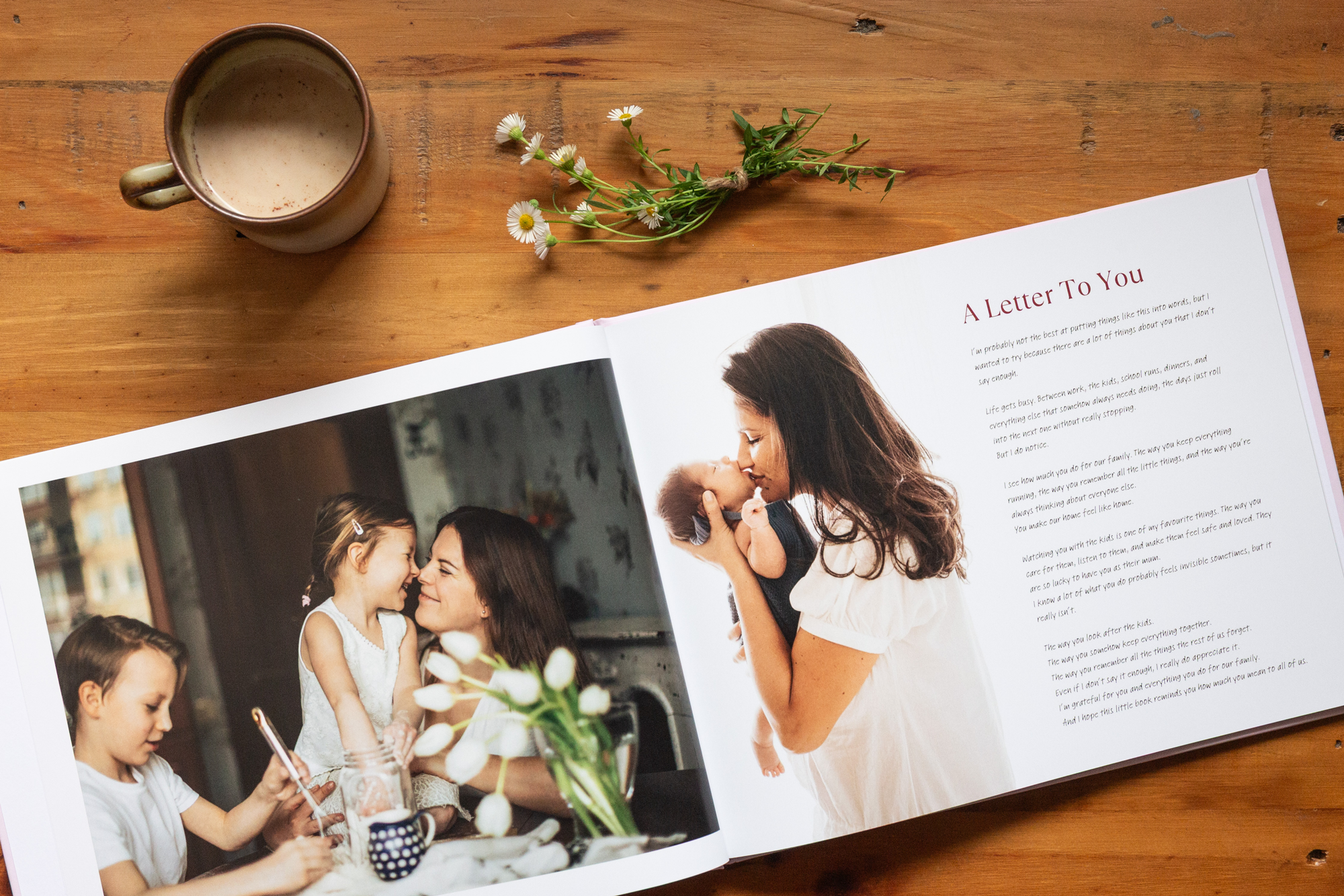 The For Mum (pink) template is designed for your partner, and your kids, to fill in for you. The prompts make it easy even if he's not a natural writer. Many mums send the link with a gentle hint. Others fill it in together as a family. Either way, it works.